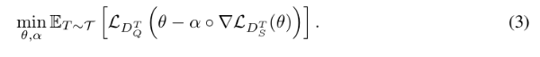 BasedonMAML,Meta-SGD[12]는 초기화 및 저녁 학습 속도를 동시에 학습하기 위해 단계적으로 학습합니다. 테스트 손실LDT Q ( T)는 SGD를 사용하여 외부 루프를 사용하여 외부 루프에서 업데이트 할 수 있습니다. 또한, 학습률은 좌표에 해당하는 동일한 차원의 벡터입니다. Meta-SGD의 최적화 목표는 다음과 같이 작성할 수 있습니다.